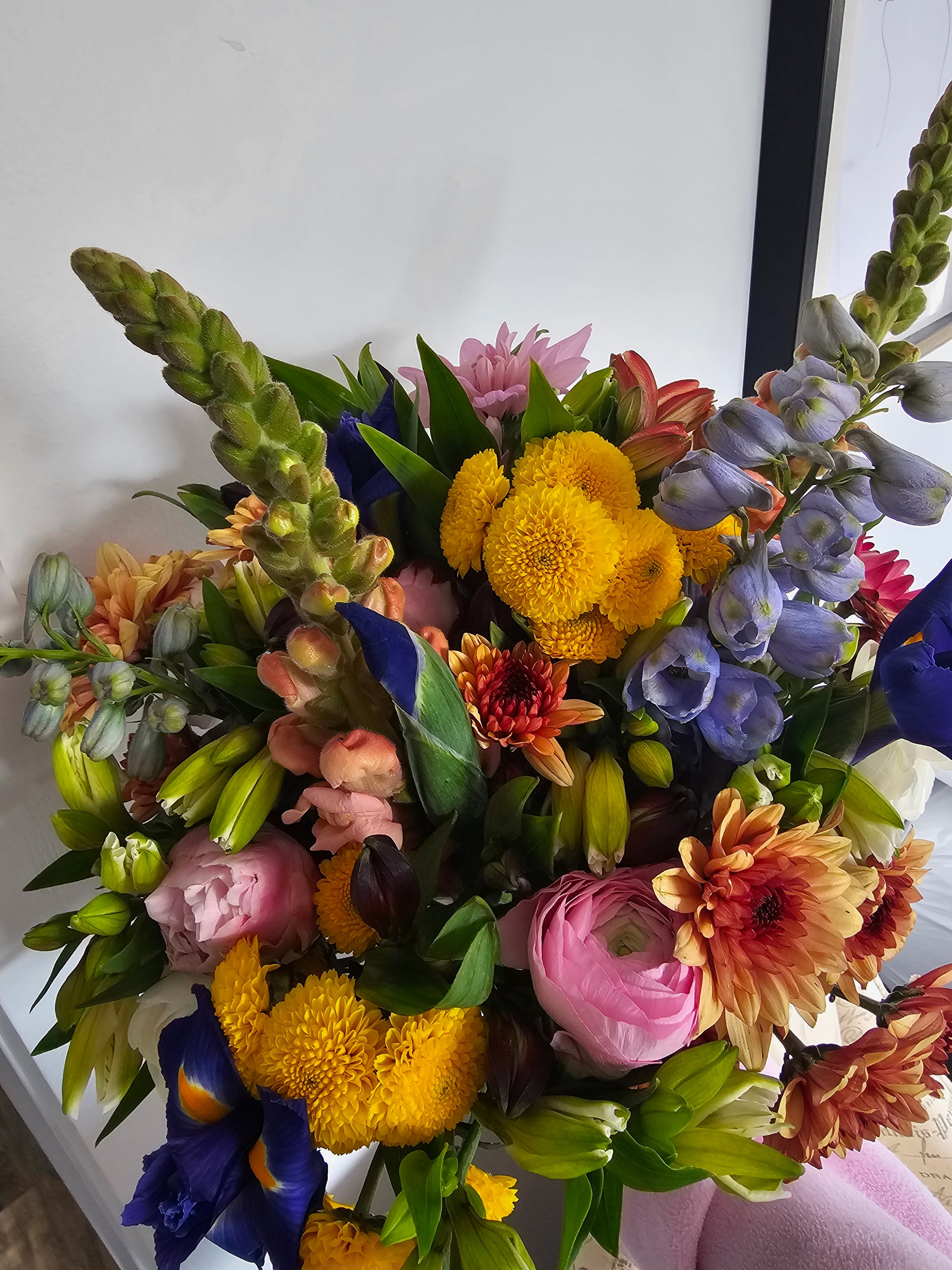 A truly abundant bouquet of our freshest seasonal flowers – lush, full, and unforgettable. This size is perfect for anniversaries, special occasions, or when you really want to spoil someone. Wrapped in style with a complimentary handwritten gift card.