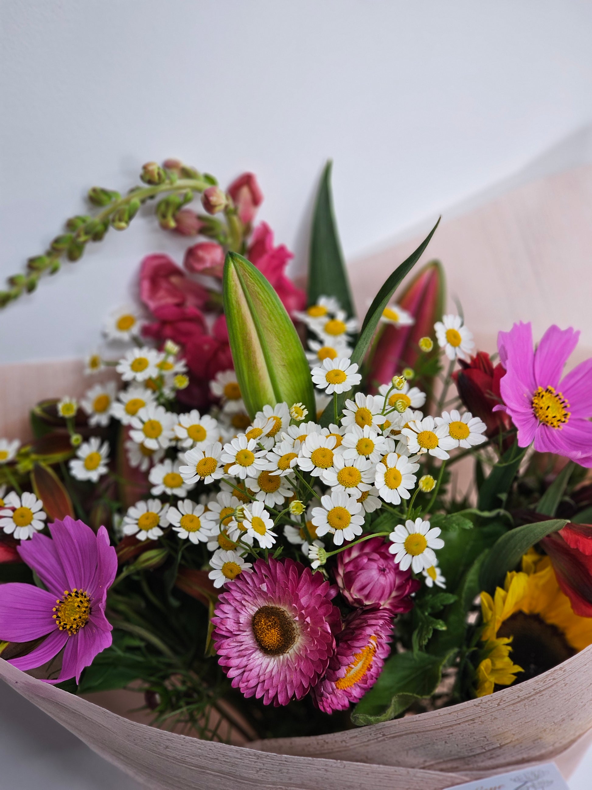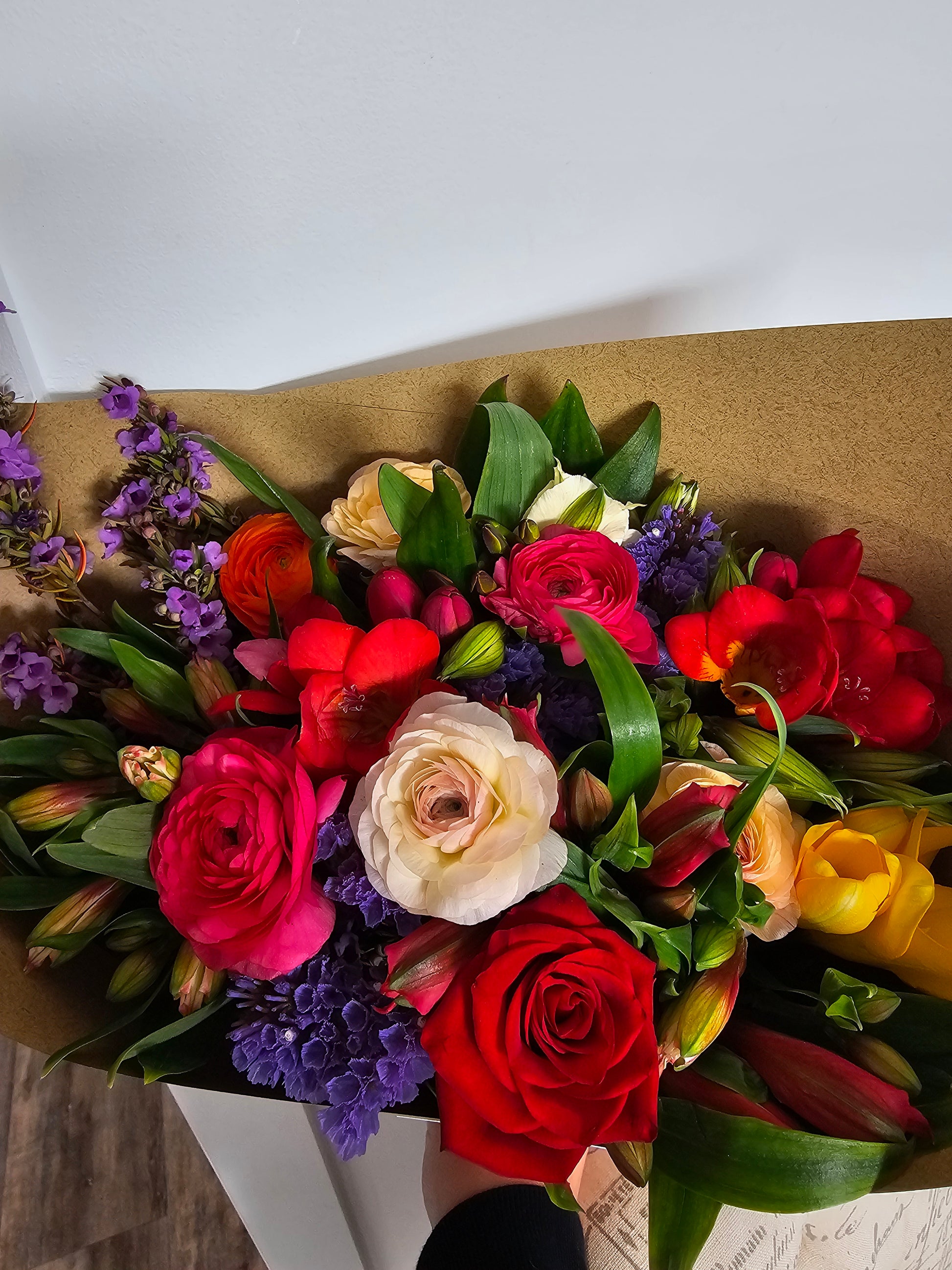 A generous bunch of locally grown, in-season blooms, chosen by your florist for freshness and beauty. Thoughtful and full of colour, this size is perfect for birthdays, celebrations, or to brighten someone’s day. Eco-wrapped with a free handwritten gift card.